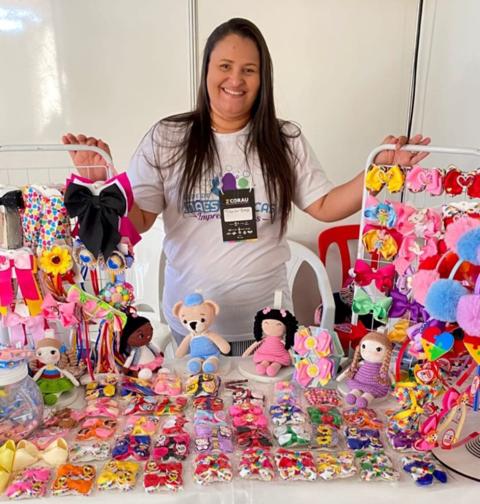 Com apoio da Rede de Mães Atípicas Empreendedoras, ela passou a expor em feiras e, aos poucos, retomou algo que havia perdido: o contato com outras pessoas. “Hoje consigo interagir, algo que era muito difícil pra mim.”