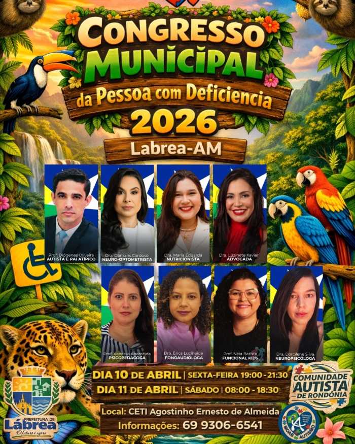 A missão acontecerá durante o Congresso Municipal da Pessoa com Deficiência 2026, nos dias 10 e 11 de abril, no município de Lábrea AM, reunindo profissionais de diversas áreas para discutir estratégias de atendimento, inclusão e qualidade de vida para pessoas com deficiência.
