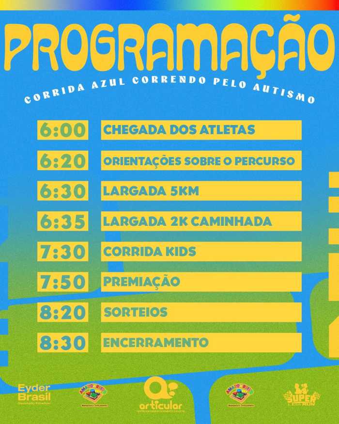 • Corrida Kids Atípica: Um percurso especial de 200m exclusivo para crianças autistas, focado na experiência e celebração, sem pódio competitivo.